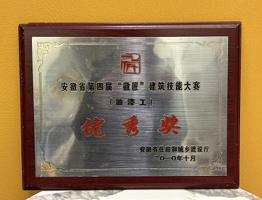 安徽省第四屆“徽匠”建筑技能大賽(油漆工)優(yōu)秀獎(jiǎng)
