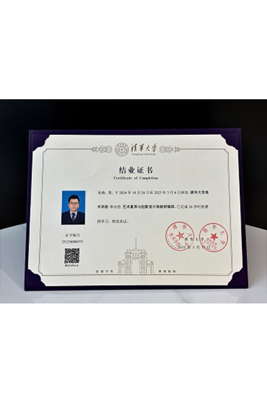 吳濤榮獲 清華大學美術(shù)學院《藝術(shù)素養(yǎng)與創(chuàng)新設計高級研修班》結(jié)業(yè)證書